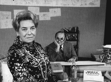 ORF Silvestersendung, Ironimus und Hertha Firnberg, Bundesministerin für Unterricht und Kunst, im Studio