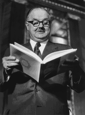 Kanzler Raab mit dem ersten IRONIMUS Buch, 1955